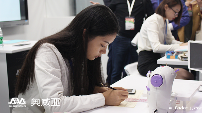 智慧实训空间是本次展会最火爆的雷竞技app官网网站区域,围观人员络绎不绝,大家都对“智慧实训”这一新颖的教学形式产生了浓厚兴趣。在智慧实训空间里,有2名的学生坐缝纫机前,专注地进行着缝纫训练。